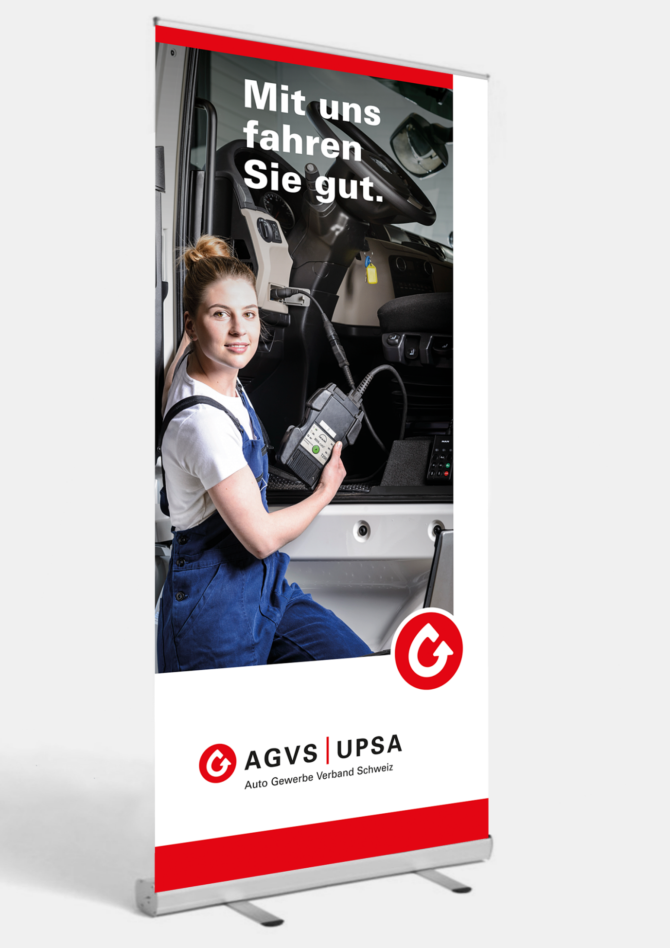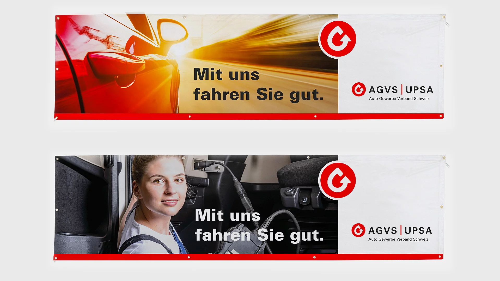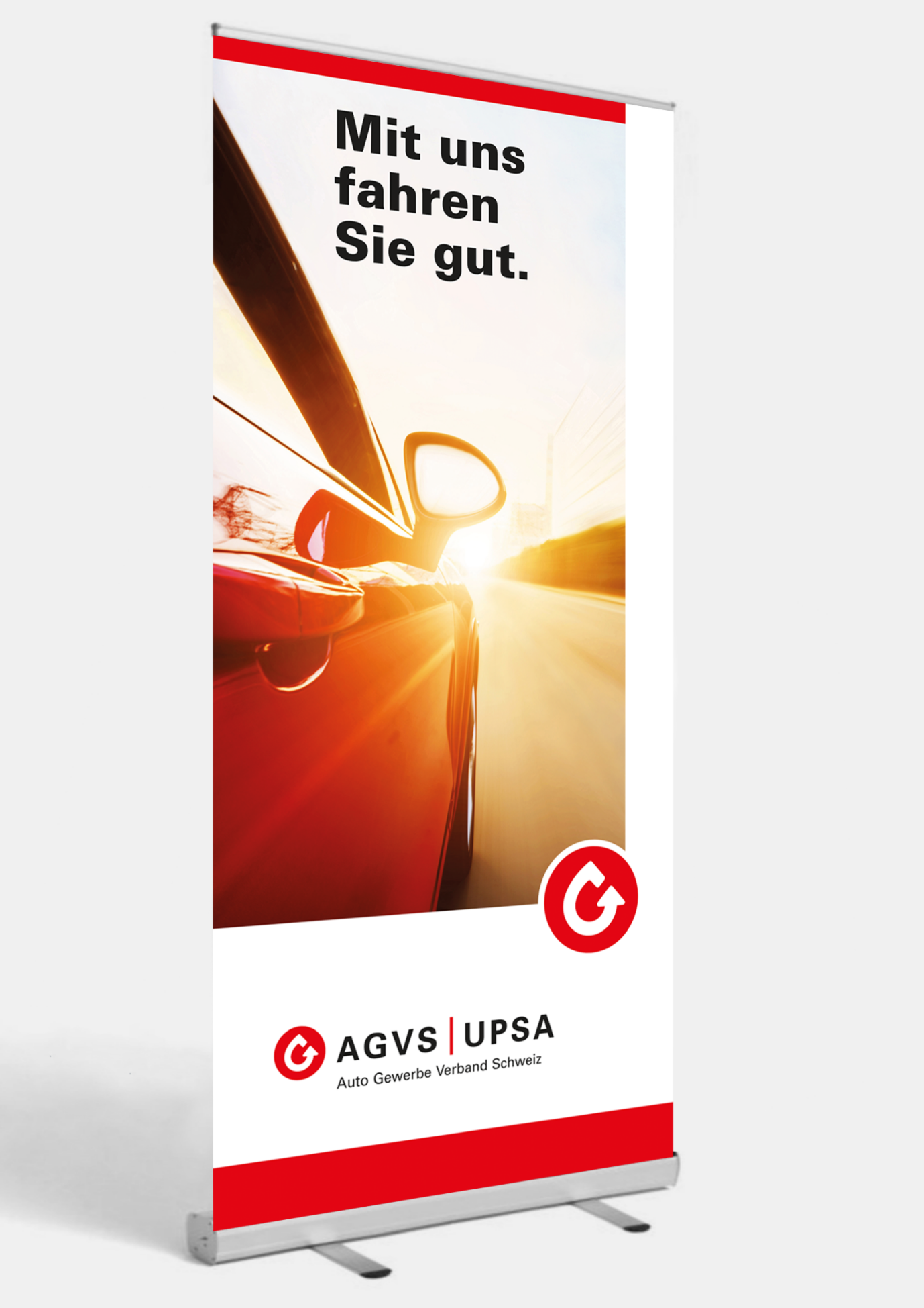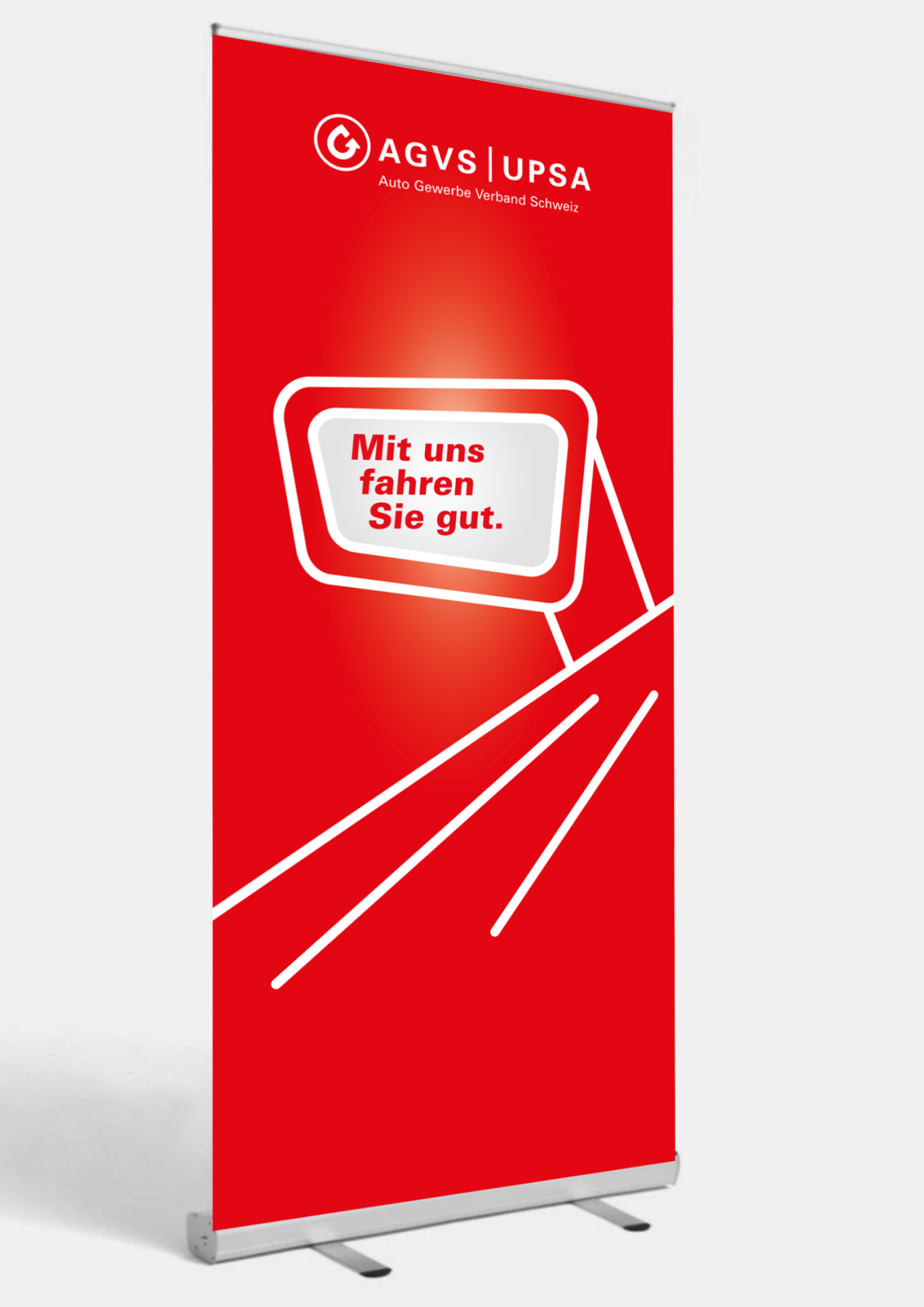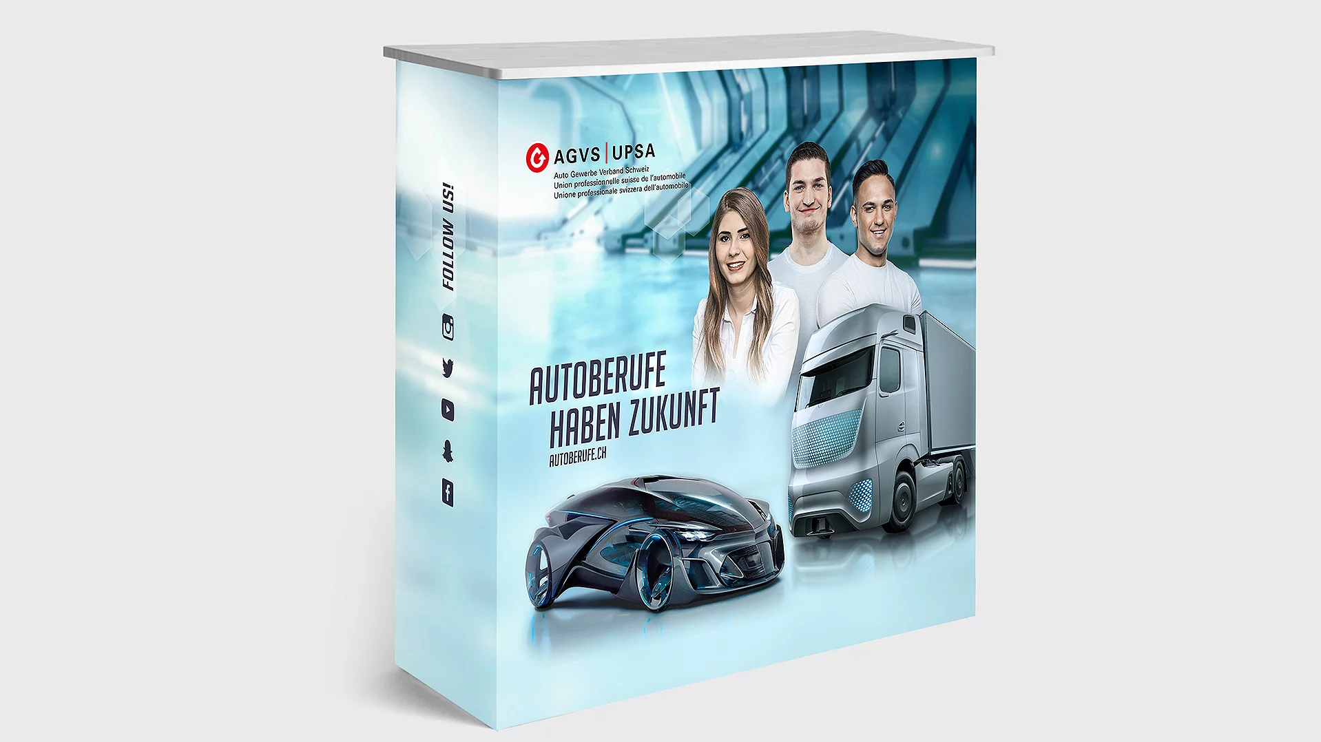 Damit Ihre Sektion oder Ihre Garage an der nächsten Regional- oder Berufsmesse jeder Besucherin und jedem Besucher sofort ins Auge sticht und einen positiven und vor allem auch bleibenden Eindruck hinterlässt, hat der AGVS auch die passenden Roll-ups, Beachflags sowie Messwände im Angebot.