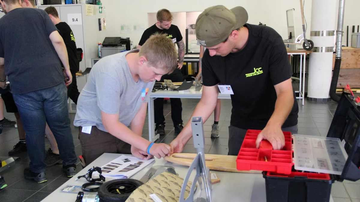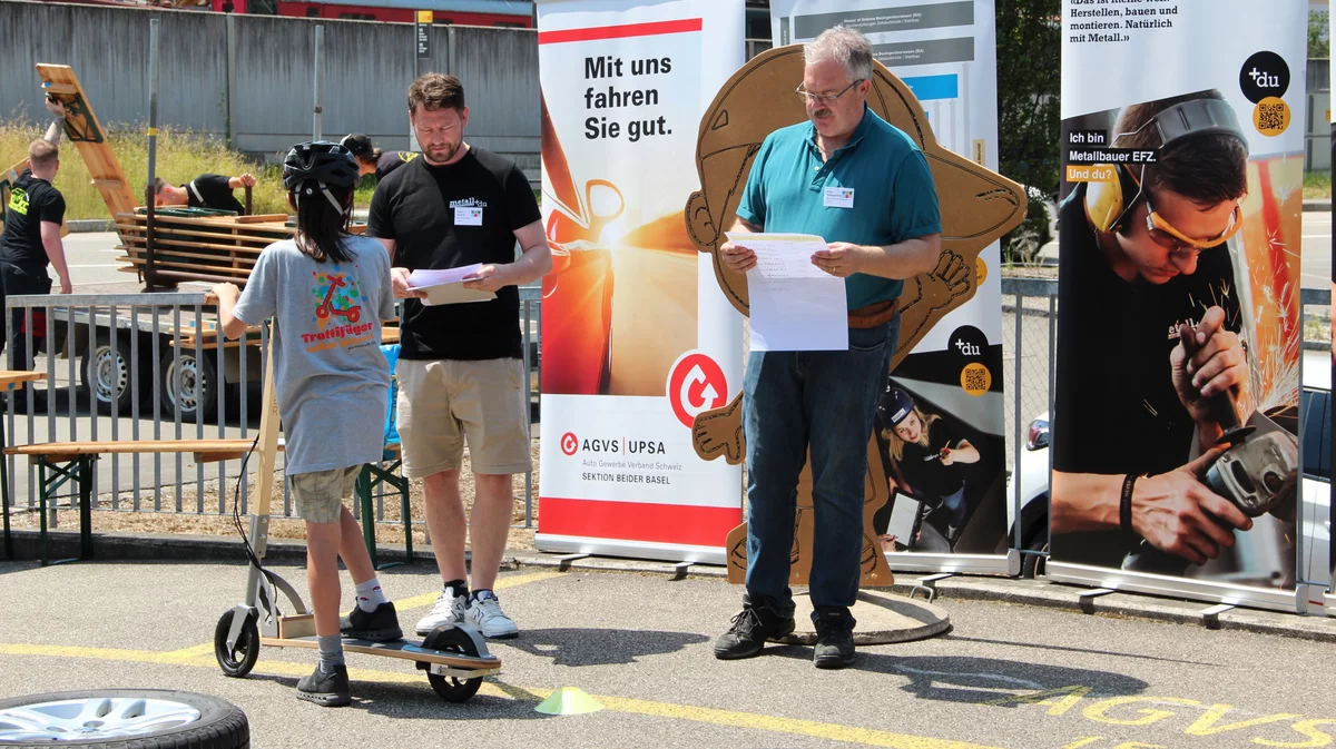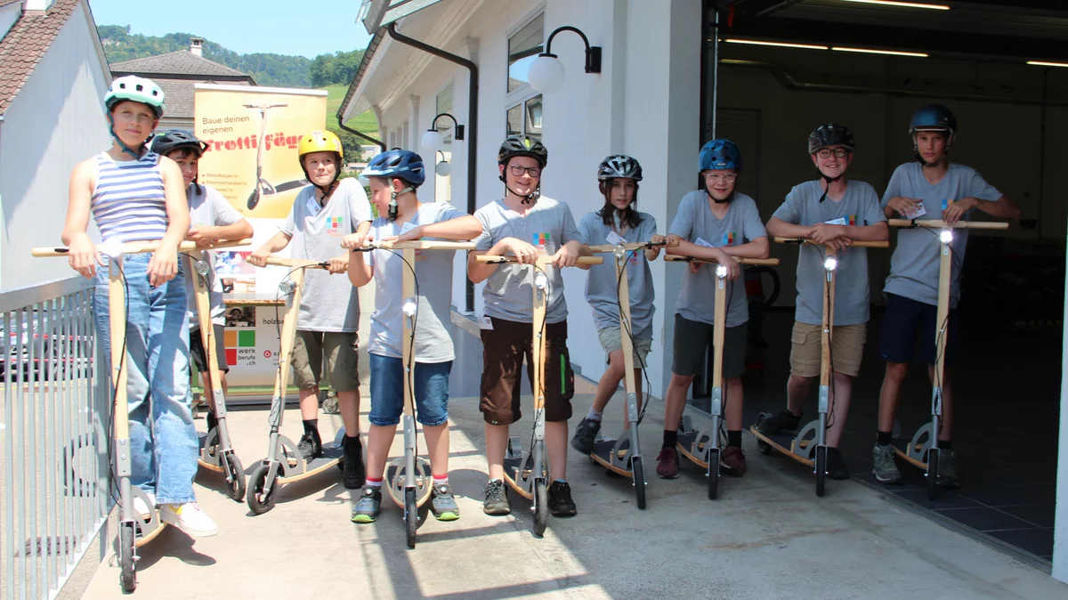 Anschliessend konnten sie ihre frisch gebauten Trottis in einem kleinen Parcours gleich ausprobieren – ein toller Tag voller Spass, Teamgeist und ersten Einblicken ins Handwerk!